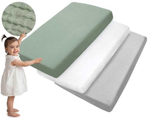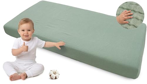 Medi Partners Drap Housse 60x120 lit Bebe Matelas Enfant Bébé - 100% Coton Mousseline Fitted Draps Lit pour Baby Bed Cover Sheets Matela literie Mattress Couette (Olive)