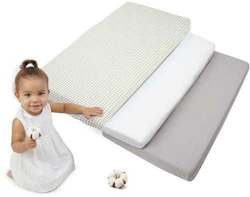 Medi Partners Drap Housse 60x120 Lot de 3 Draps lit Bebe Matelas Enfant Bébé - 100% Coton Fitted Draps Lit pour Baby Bed Cover Sheets Matela literie Mattress Couette (Olive-Gris-Blanc)