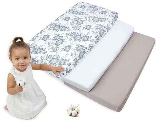 Medi Partners Drap Housse 60x120 Lot de 3 Draps lit Bebe Matelas Enfant Bébé - 100% Coton Fitted Draps Lit pour Baby Bed Cover Sheets Matela literie Mattress Couette (Glade-Blanc-Gris)