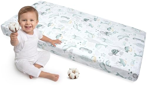 Medi Partners Drap Housse 60x120 lit Bebe Matelas Enfant Bébé - 100% Coton Fitted Draps Lit pour Baby Bed Cover Sheets Matela literie Mattress Couette (Océan)