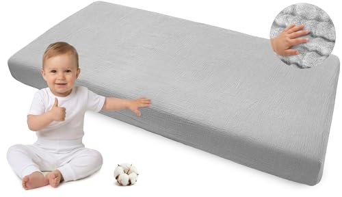 Medi Partners Drap Housse 60x120 lit Bebe Matelas Enfant Bébé - 100% Coton Mousseline Fitted Draps Lit pour Baby Bed Cover Sheets Matela literie Mattress Couette (Gris)