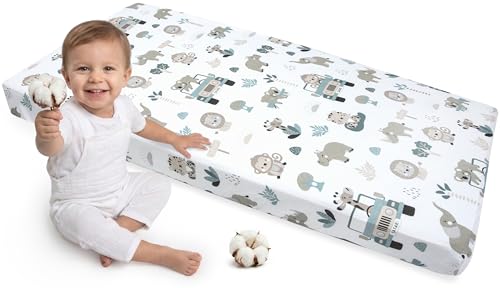 Medi Partners Drap Housse 60x120 lit Bebe Matelas Enfant Bébé - 100% Coton Fitted Draps Lit pour Baby Bed Cover Sheets Matela literie Mattress Couette (Zoo de la Menthe)