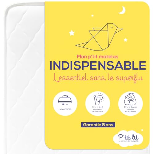 P'TIT LIT - Matelas Bébé/Enfant 70x140 cm - Réversible : Face Été/Face Hiver - sans Traitement Chimique - Certifié Oeko-Tex - Epaisseur 10 cm - Doux et Confortable