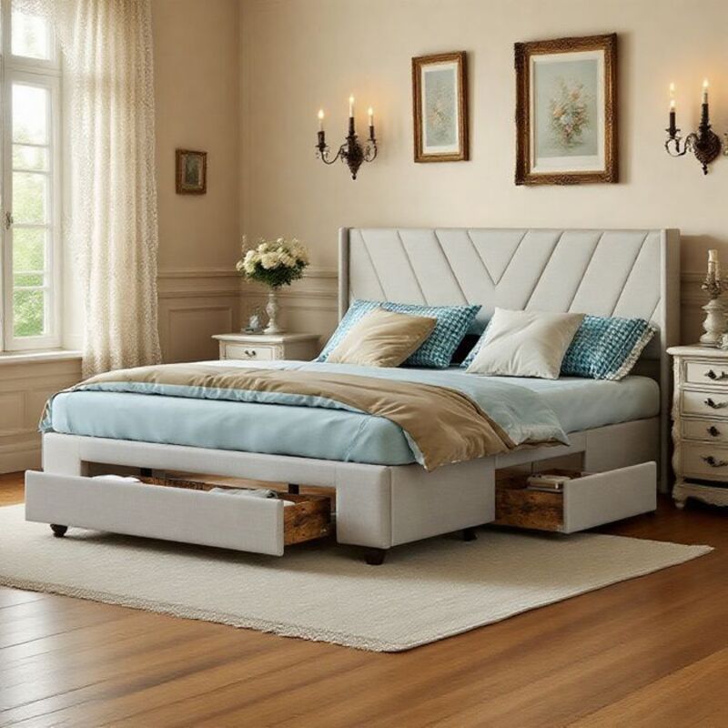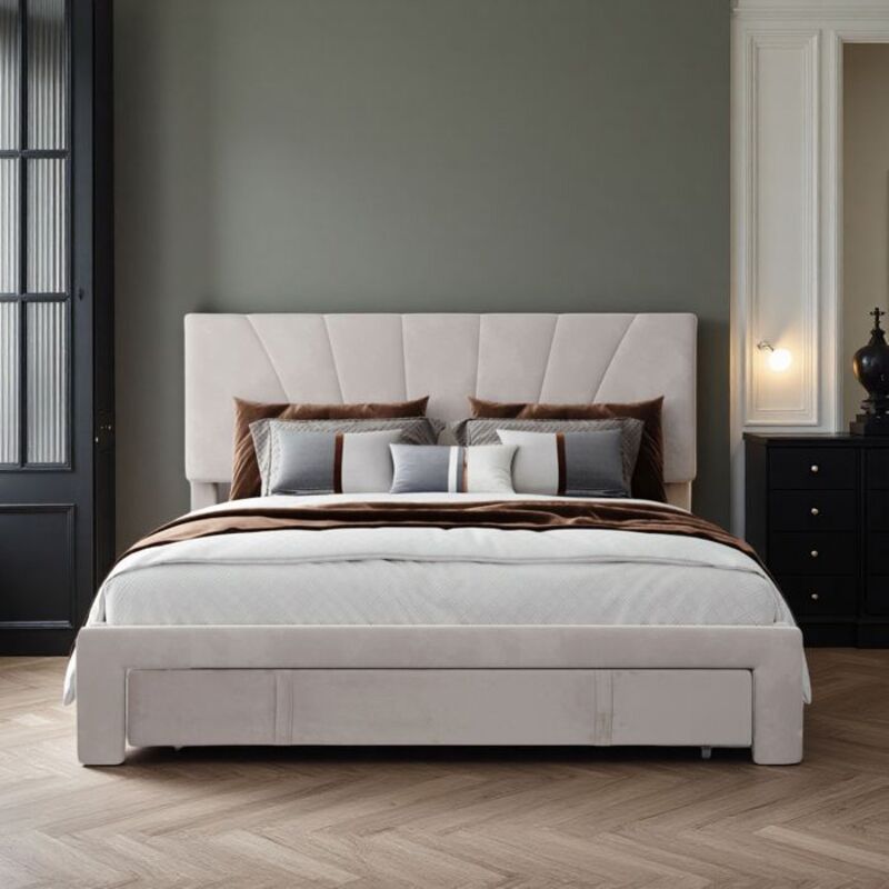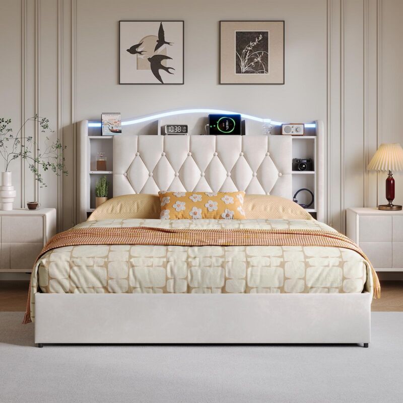 vidaXL Ramsäng med madrass & LED gräddvit 140x190 cm tyg