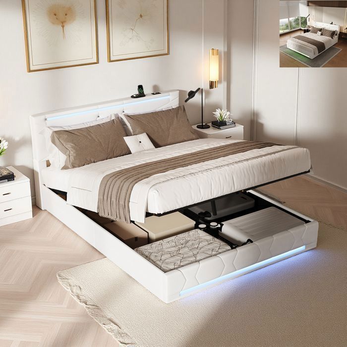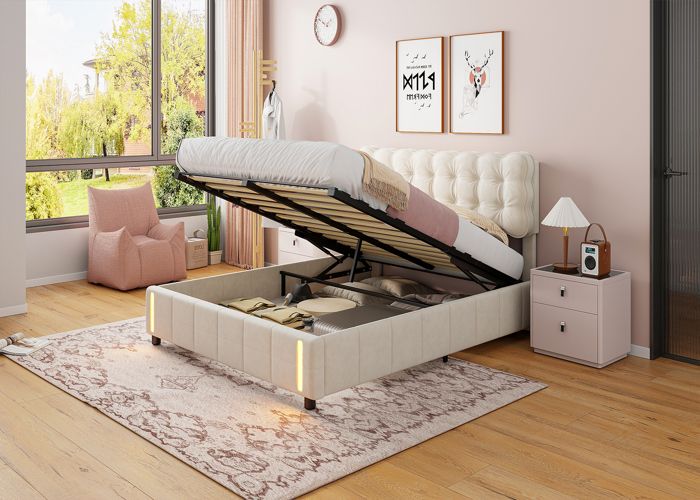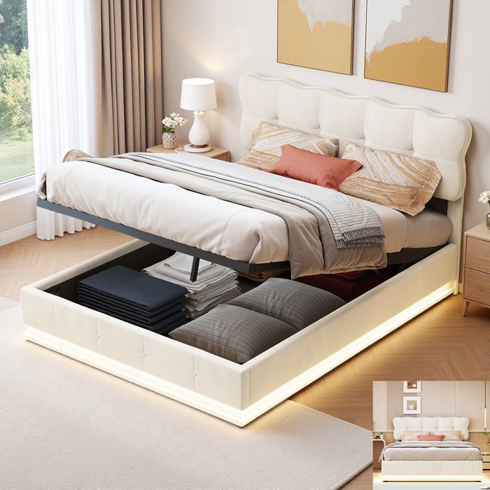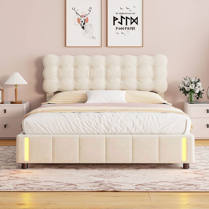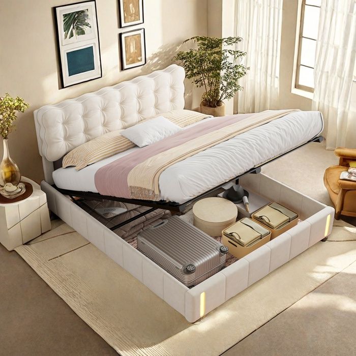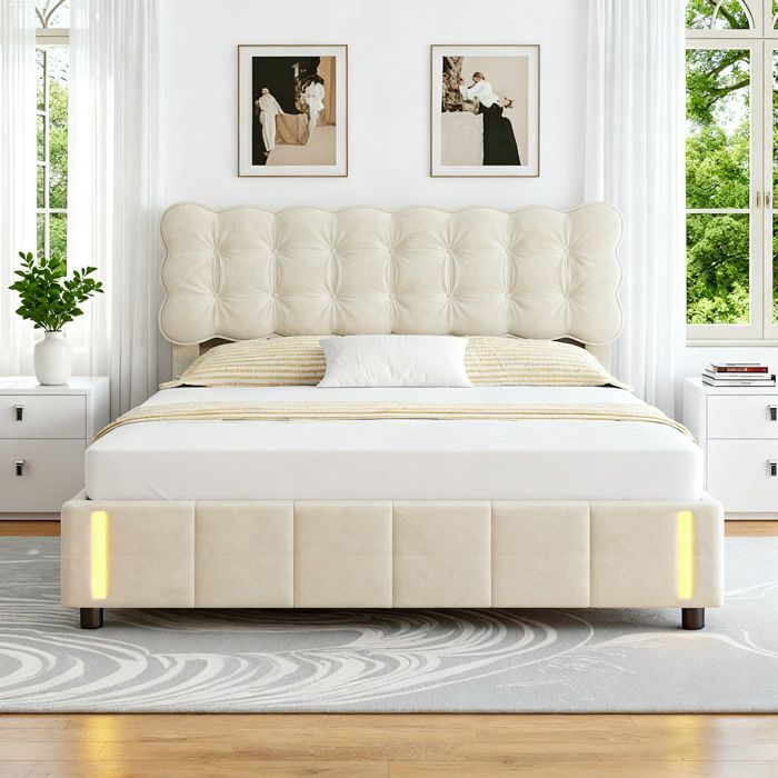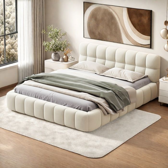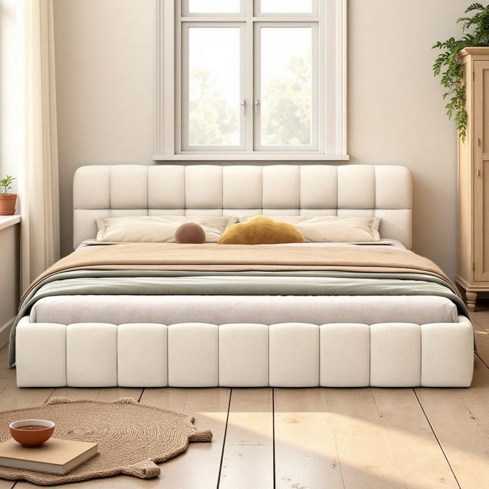 Lit beige capitonne