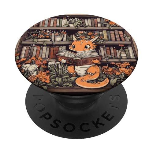 Dragon lit une bibliothèque Cottagecore Bookworm Bookish PopSockets PopGrip Interchangeable