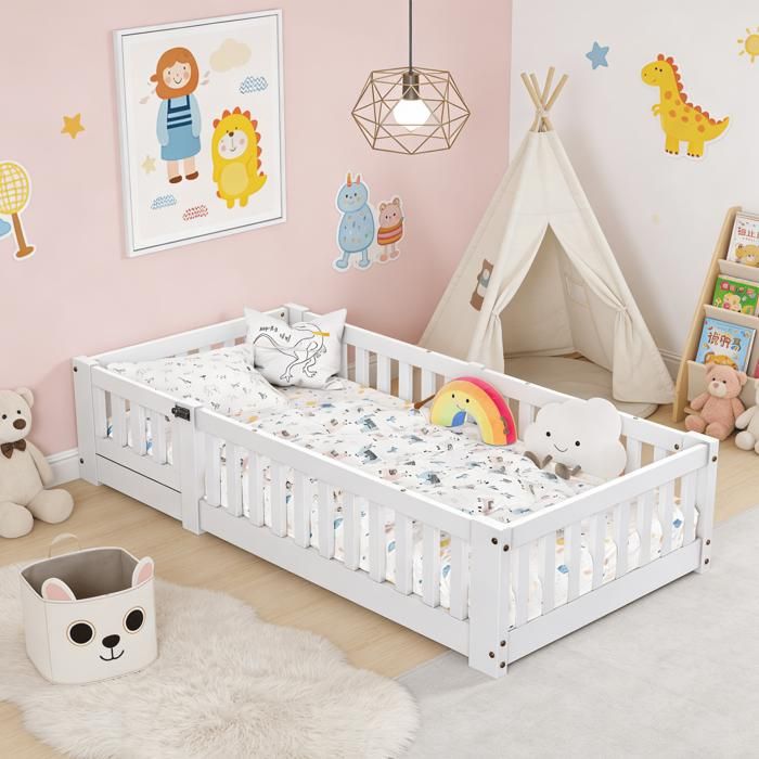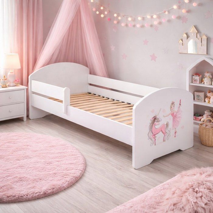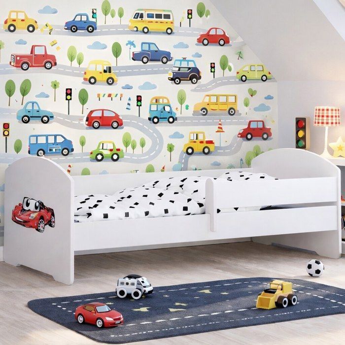 Lit enfant LUK 80x160 cm pour garçon avec sommier et barrière de sécurité – lit enfant motif voiture