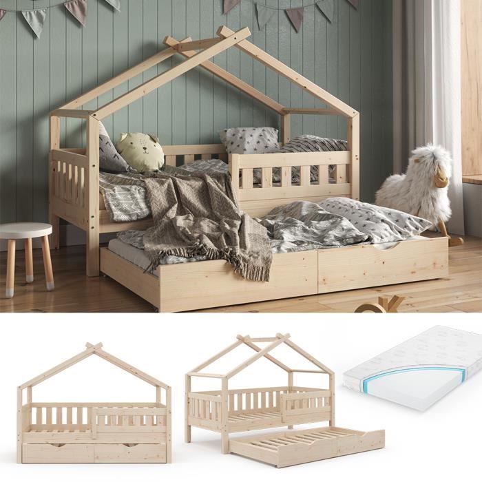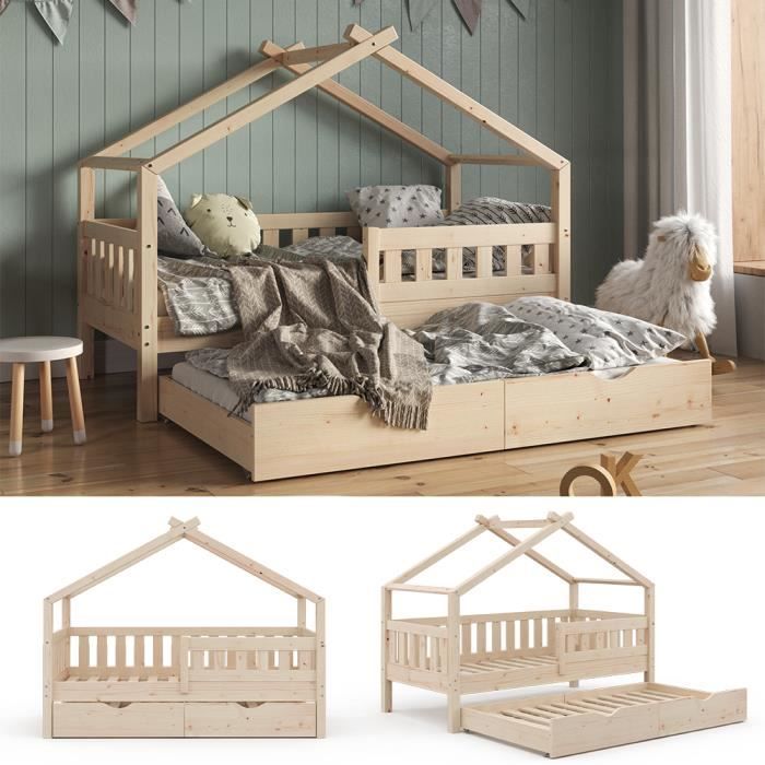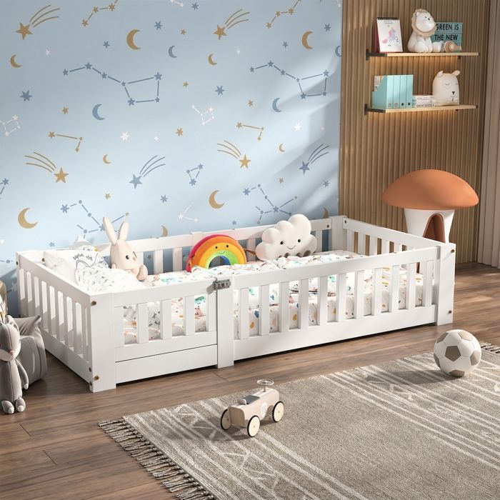 Lit enfant tomi mix 70x140, 80x160, 80x180 cm - ensemble complet avec tiroir et barrière de sécurité