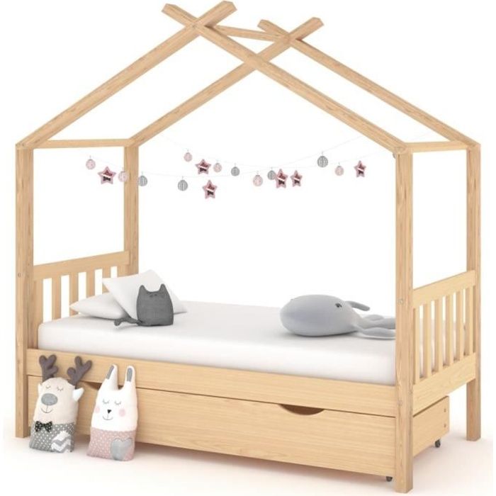 Lit cabane 80x160 avec barrière