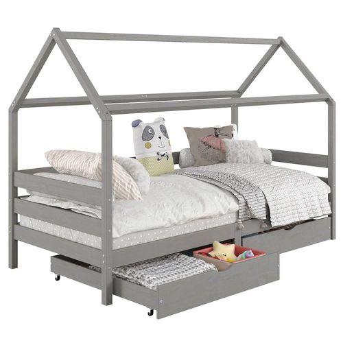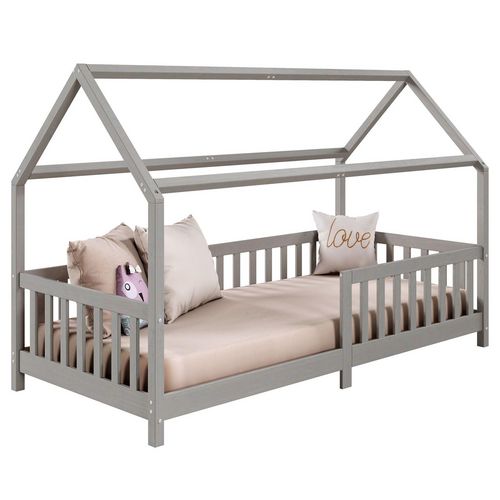Lit cabane enfant 90 x 200 cm avec sommier gris gris
