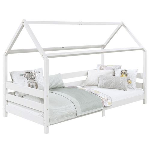 Lit cabane RENA 90 x 190 cm, en pin massif lasuré blanc blanc 96 x 196 x 138 cm