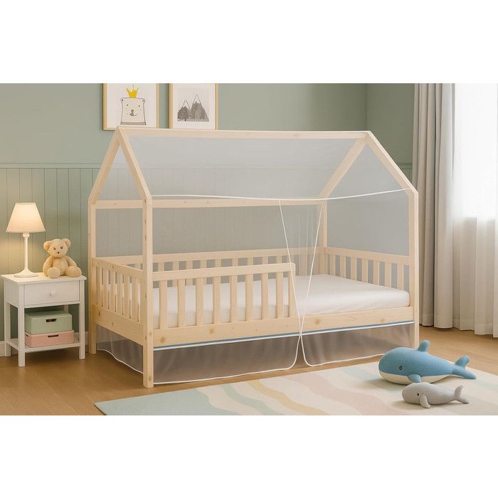 Lit cabane SILA 90x190 cm lit simple enfant 1 place type Montessori en pin massif finition naturelle
