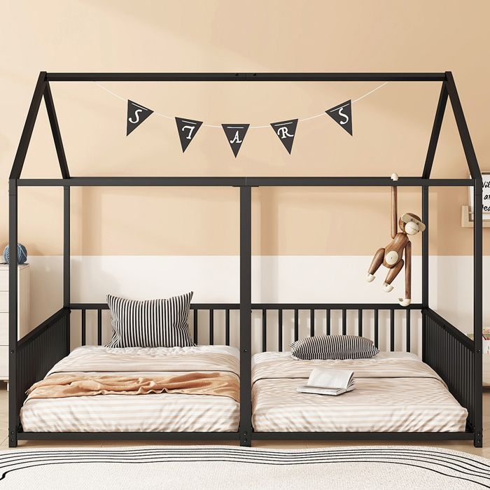 Lit cabane lit enfant 140x200 cm - lit double minimaliste avec sommier - en pin blanc (sans matelas)