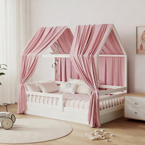 GFCC Ciel de Lit Cabane Ensemble de Décoration avec 2 Pièces Rideaux Lit Cabane Enfant Baldaquin Ciel en Tissu de Maison Chambre pour Fille Garçon,125 x 350 cm Rose