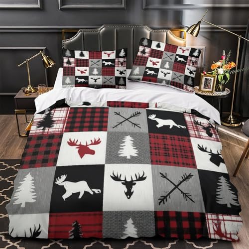Animaux de la forêt Housse de Couette Microfibre Hypoallergique 3D Effet Léger Conception de cabane rustique Parure de Lit Fermeture Éclair Ultra Douce Confortable for Garçon Double(200x200cm)