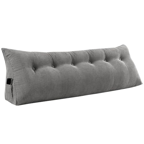 HUOLE Coussin De Lecture pour Lit Ou Canapé Triangulaire Coussin Dossier Canapé Coussin Tete De Lit Bebe Housse Amovible Rembourrée pour Plus De Confort-180 * 50 * 20 cm-Un Gris