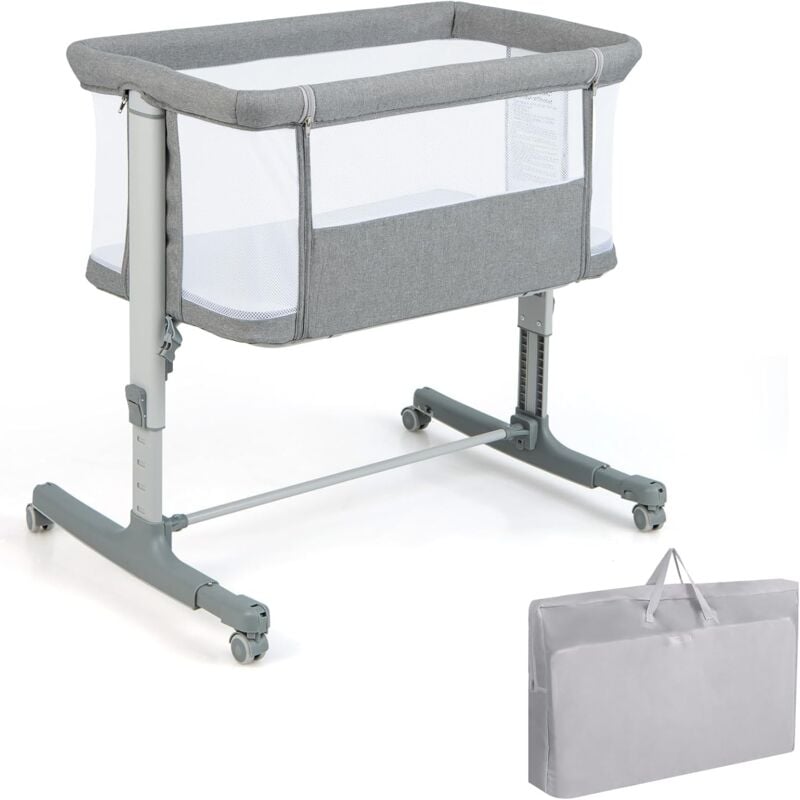 Costway 4 en 1 lit cododo bébé avec matelas doux & filet, berceau bébé evolutif avec 6 hauteurs réglables, inclinaison réglable, 4 roulettes verrouillables, lit de voyage 0-6 mois, charge 9kg (gris)