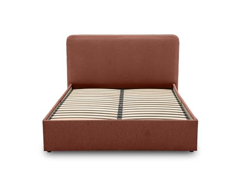 Bestmobilier - Lit Coffre 140X190 cm Goyave en Tissu Terracotta avec Sommier Inclus - Chambre Adulte