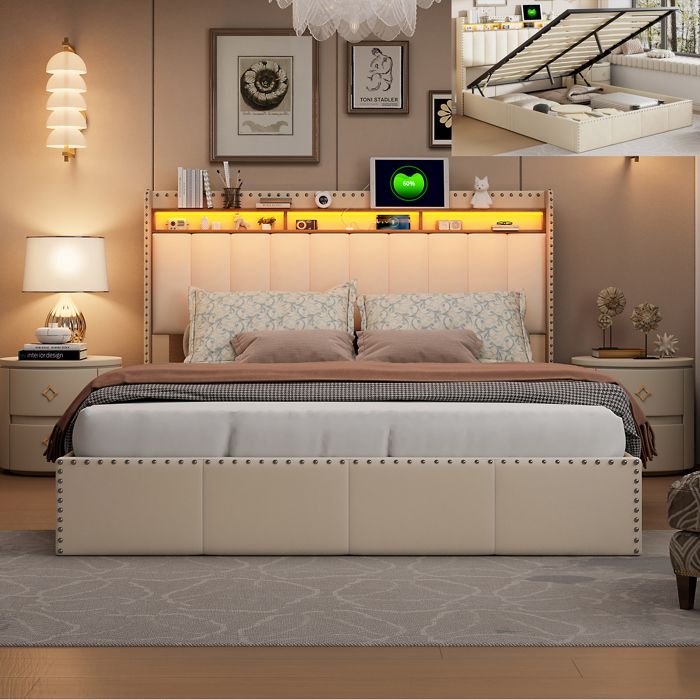Lit coffre beige