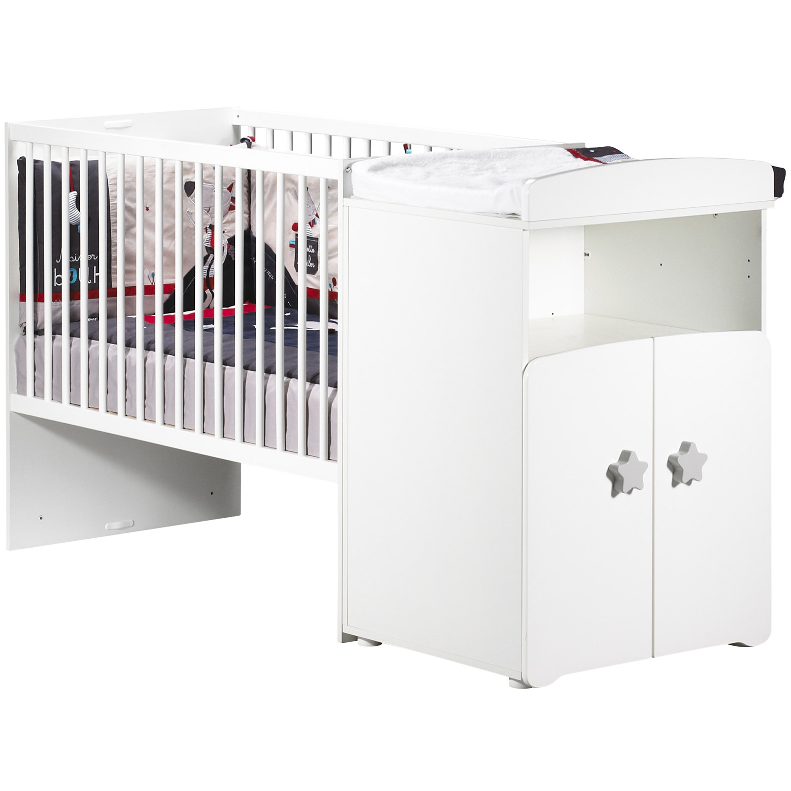 Lit bébé combiné évolutif New Basic Boutons étoile gris (60 x 120 cm)