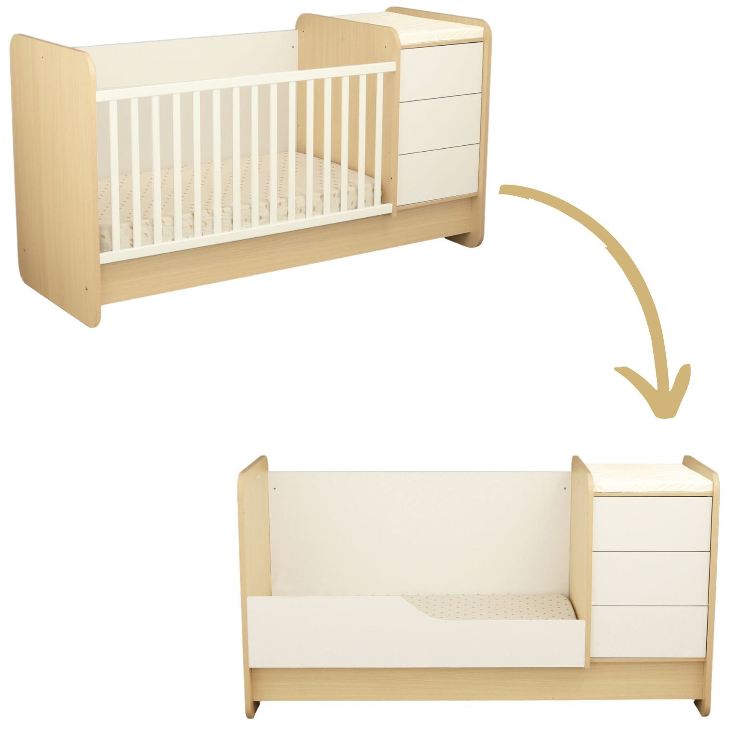 Lit bébé combiné - 120x60cm - Evolutif en 90x190cm - Babyprice First - En bois et chant bois