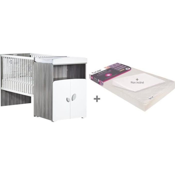 BABY PRICE Lit combiné évolutif + TINEO Matelas bébé 60 x 120 cm + plan incliné