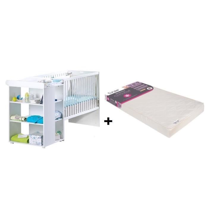 SAUTHON ELOI Lit Combiné 3 en 1 Évolutif - Blanc + TINEO Matelas bébé 60 x 120 cm