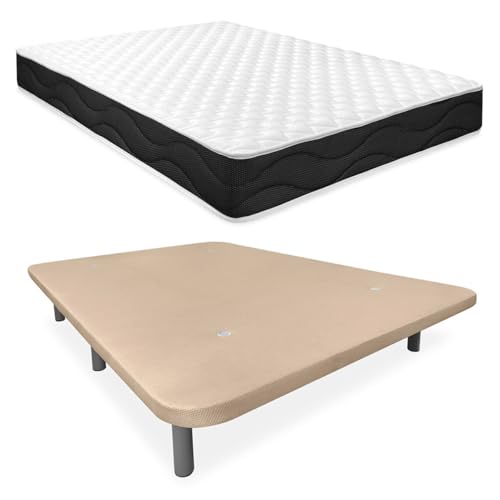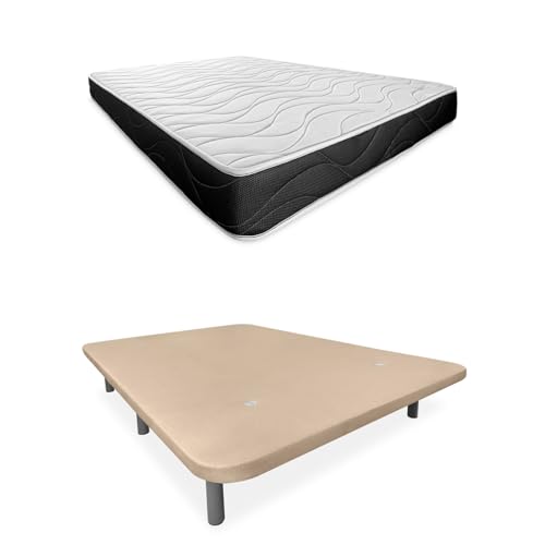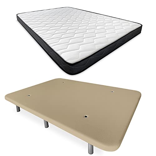 DUÉRMETE ONLINE Lit Complet avec Matelas Viscotec réversible + Base tapissée renforcée Couleur Beige avec 6 Pieds métalliques filetés, 150 x 190 cm