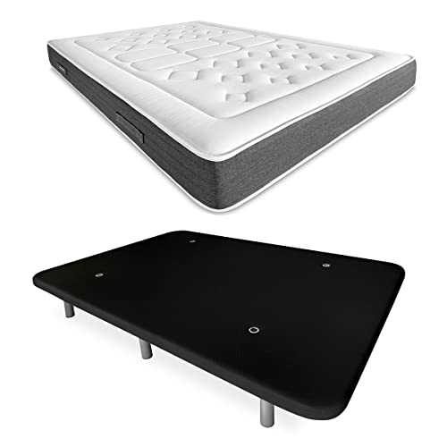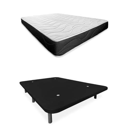 DUÉRMETE ONLINE Noir Lit Complet avec Matelas Viscotec Réversible + Base Tapissée Renforcée Couleur 6 Pieds Bois 150 x 190