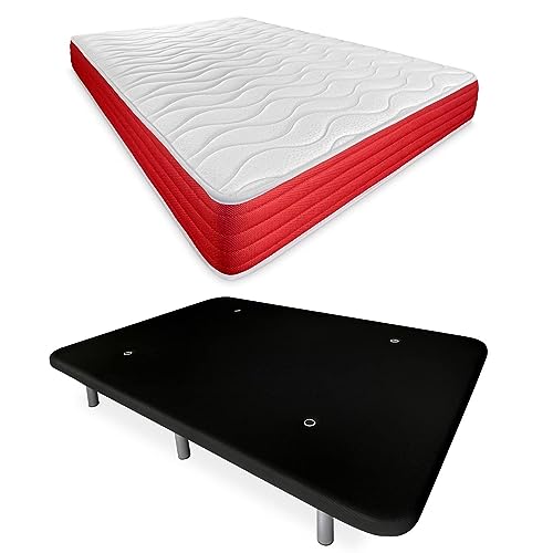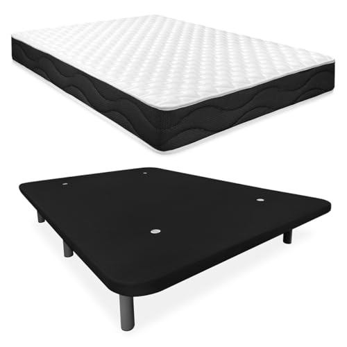 DUÉRMETE ONLINE Lit Complet avec Matelas Viscotec réversible + Base tapissée renforcée de Couleur Noire avec 6 Pieds métalliques filetés, 150 x 190 cm