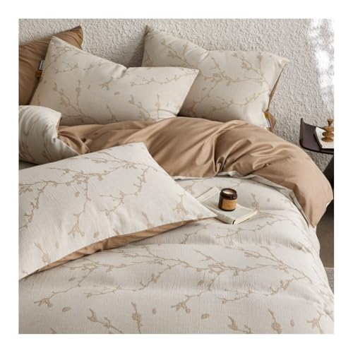 Housse de Couette Fleurie 200x230 cm Ado Adultes Parure de Lit 2 Personnes avec Fermeture Éclair Filles Housse Couette en Coton avec 1 drap housse150/180x200cm Taies d'oreiller48x74cm(Brown D,KING)