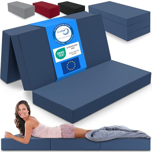 Beautissu Matelas Pliable 2 Personnes Adulte 120x195 cm - Mousse Chauffeuse 1 Place Matelas de Sol Camping Pliant Futon Voyage Lit d'Appoint Bleu – Campix