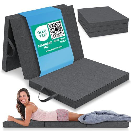 Beautissu Matelas Pliable 2 Personnes Adulte 100x200 cm - Mousse Chauffeuse 1 Place Matelas de Sol Camping Pliant Futon Voyage Lit d'Appoint Anthracite – Campix