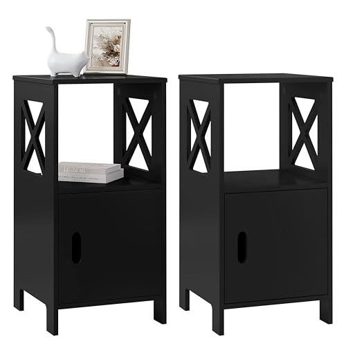 WOLTU Table de Chevet, Table de Nuit, Lot de 2,Table de Chevet Noire, Chevet de Lit, Table d’Appoint, 1 Casier Ouvert et 1 Compartiment avec Porte, Style Scandinave, en MDF, 30x30x60cm