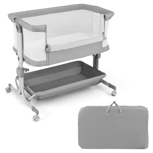 FANTASK Lit bébé 3 en 1, berceau et lit de voyage, lit d'appoint réglable en hauteur sur 5 niveaux, inclinaison à 10 °, lit d'enfant avec matelas, sac de transport, landau pour bébé jusqu'à 9 kg (gris
