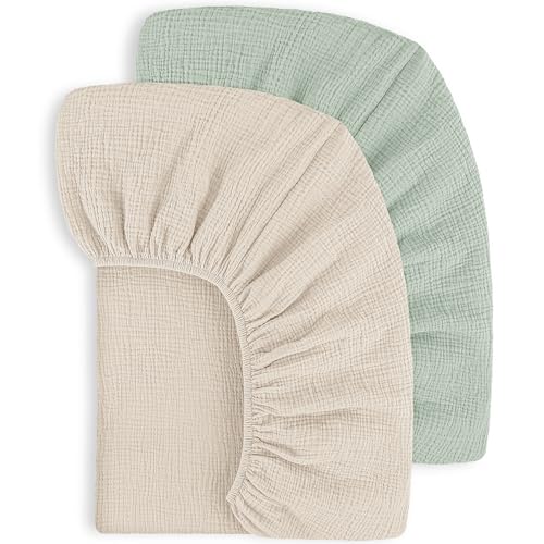 Susurration Lot de 2 Draps Housses pour Enfants 100% Coton Mousseline Draps de lit pour Bébé Drap Housse pour Lit de Voyage Draps D'appoint 60x120cm/70x140cm (Sauge Crème)