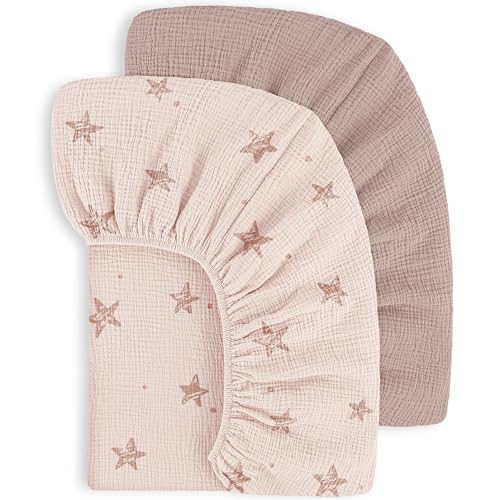 Susurration Lot de 2 Draps Housses pour Enfants 100% Coton Mousseline Draps de lit pour Bébé Drap Housse pour Lit de Voyage Draps D'appoint 60x120cm/70x140cm (Rose Star)