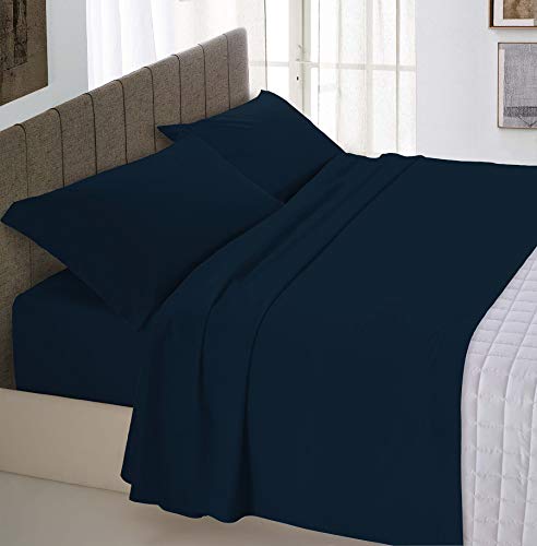 Italian Bed Linen Parure de lit Max Color, Coton, Bleu foncé, 2 Places