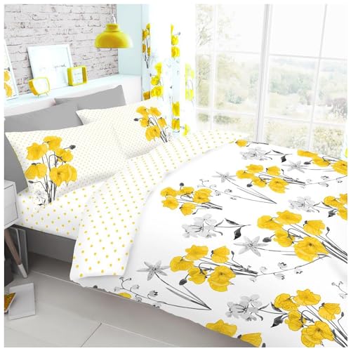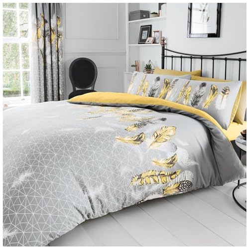Gaveno Cavailia Parure de lit 2 Places Luxueuse en Polycoton, composée d’Une Housse de Couette et de taies d’Oreiller, avec Motif à Plumes, Jaune
