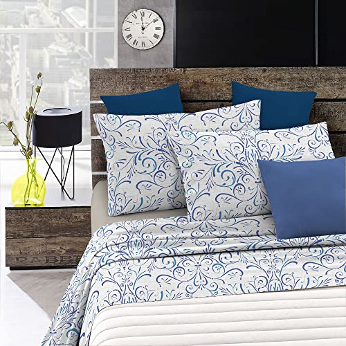 Italian Bed Linen Parure de lit “Sogni d’Autore” avec impression digitale à couverture totale, fabriqué en Italie, 100 % Coton, SD09, 2 Places