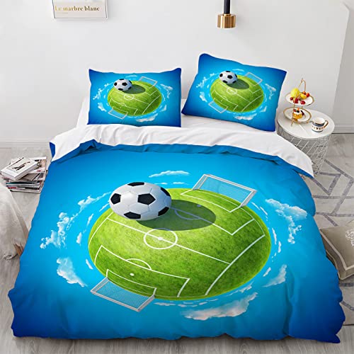 ZMDQD Housse de Couette 200x200 Ballon de Foot Bleu Parure de Lit 1 Personne Sets de Housse Couette avec Fermeture Éclair 100% Microfibre Respirant Fin et léger avec 2 taie d'oreillers de 65 x 65 cm
