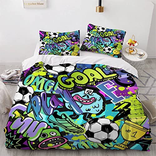 RFFLUX Parure de Lit Football 200x200 cm 2 Personnes 3 Pièces Ultra Doux 3D Sport Foot Housse de Couette en Microfibre avec Fermeture éclair Enfant GarçOn Fille avec 2 Taies d'Oreillers 50x75