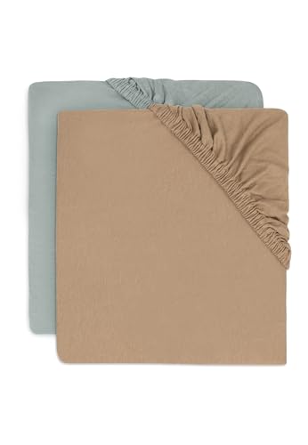 Jollein Lot de 2 draps-Housses en Jersey - pour lit d'enfant - Vert Marine/Biscuit - 60 x 120 cm - 100% Coton - Certifié Oeko-Tex