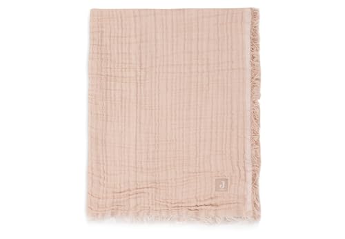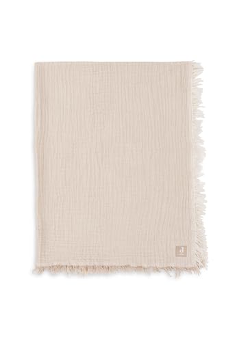 Jollein Muslin Couverture pour bébé – Rayures à franges, Biscuit/Ivoire – 120 x 120 cm – 100% coton – Pour lit d'enfant – Tog 0,5 – Certifié GOTS – Avec franges