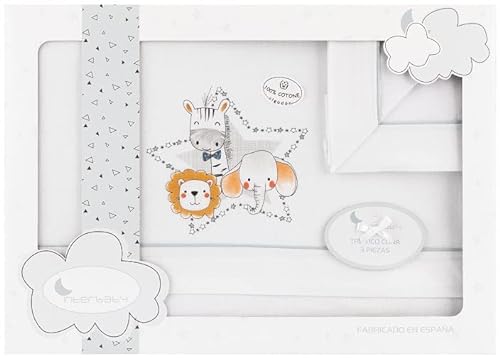 Interbaby · Parure de lit pour lit d'enfant Animalistos, Blanc et Gris, 100% Coton, 3 pièces, Drap de lit d'hiver pour bébé