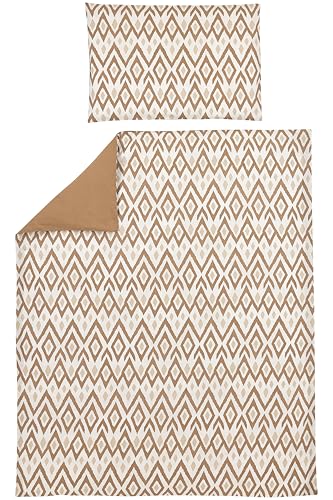 Meyco Baby Linge de lit Ikat, lit d'enfant (matière Respirante, Housse de Couette 100% Coton, taie d'oreiller Incluse, Lavable en Machine et adaptée au sèche-Linge, 100 x 135 cm), Sable/Toffee