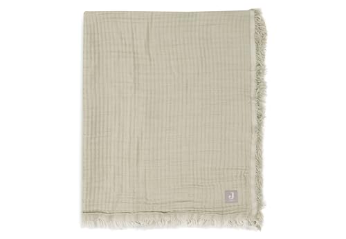 Jollein Fringe - Couverture pour lit d'enfant - Vert Olive/Ivoire - 120 x 120 cm - 100% Coton Bio - pour lit d'enfant - Couverture en Mousseline - Tog 0,5 - Certifié GOTS - Ivoire/Vert Olive