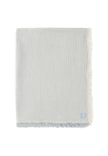 Jollein Muslin Couverture pour bébé – Rayures à franges, vert mer/ivoire – 120 x 120 cm – 100% coton – Pour lit d'enfant – Tog 0,5 – Certifié GOTS – Avec franges