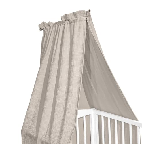Albero Mio Baldaquin pour chambre d'enfant – 100 % mousseline de coton – Ciel pour lit de bébé, lit d'enfant ou coin douillet, 150 x 200 cm, lit bébé beige