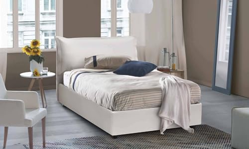 Talamo Italia - Lit Double Creta, lit Coffre avec revêtement en Tissu, 100% Made in Italy, Ouverture Frontale, avec Matelas 120x190 cm Inclus, Blanc